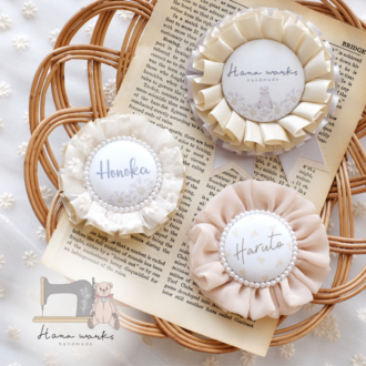 子供がいると扱いにくいグルーガンや針や糸を使わずに作れるhikoオリジナル技法で、子育ての合間やハンドメイド初心者でも簡単に可愛いロゼットがお作りいただけます。